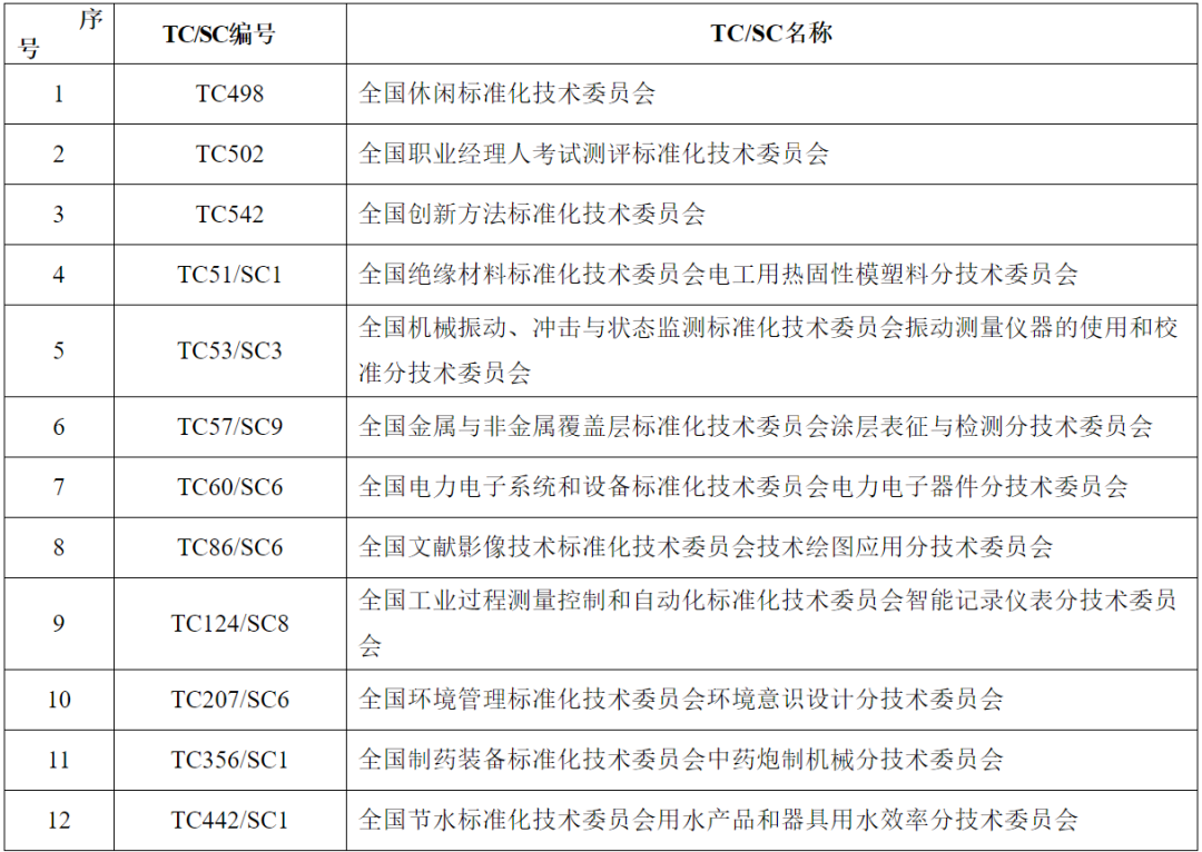 12個全國專業標準化技術委員會,擬撤銷