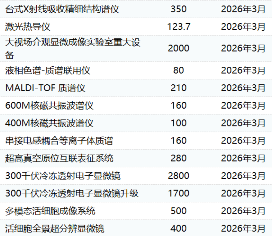 近期,清華大學發(fā)布了多項政府采購意向。采購包含共聚焦顯微鏡、酶標儀、核磁共振波譜儀、透射電子顯微鏡、液質聯(lián)用儀、分光光度計在內的儀器設備,詳情如下: