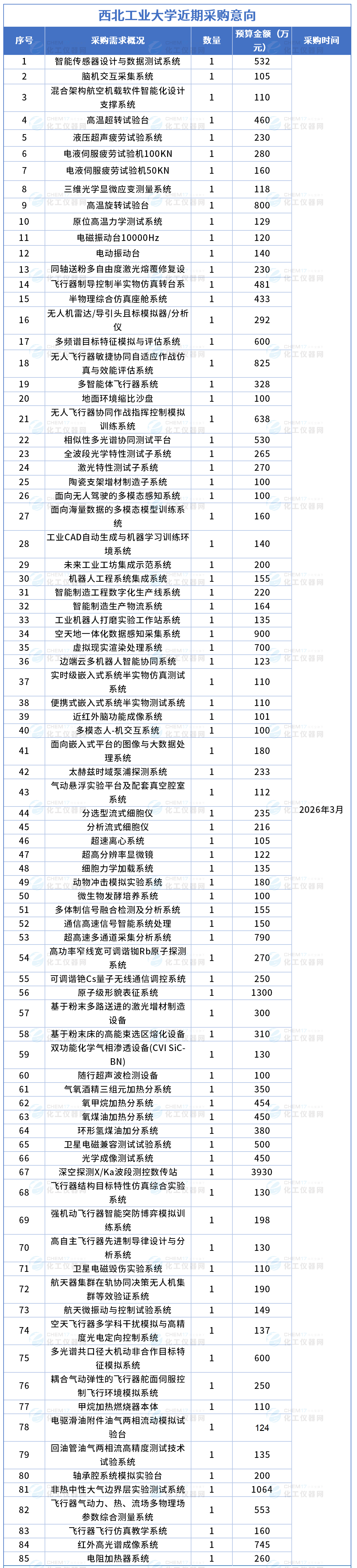 總金額超2.8億!西北工業大學發布多項儀器采購意向