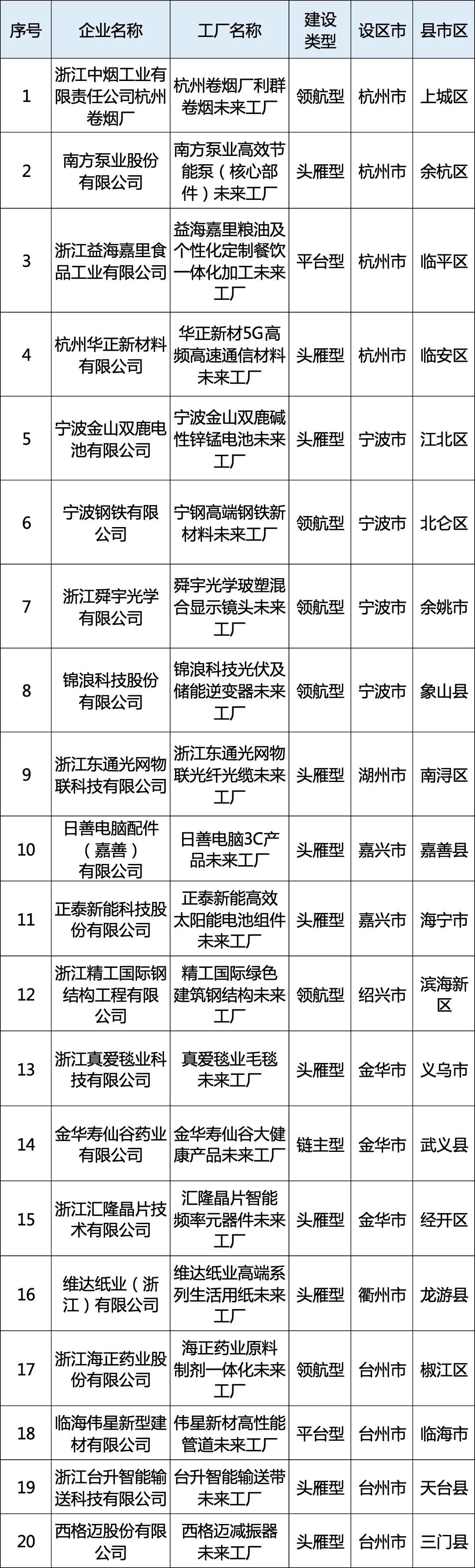 近日,省經濟和信息化廳公布2025年浙江省未來工廠、智能工廠和數字化車間名單,確定杭州卷煙廠利群卷煙未來工廠等20個浙江省未來工廠、航民達美綠色印染智能工廠等89個省級智能工廠,同步列為先進級智能工廠;萬利紡機智能織機及倍捻機數字化車間等369個省級數字化車間,同步列為基礎級智能工廠。